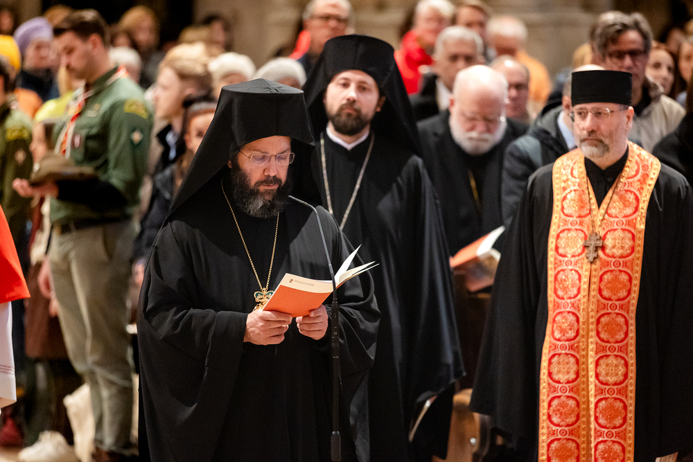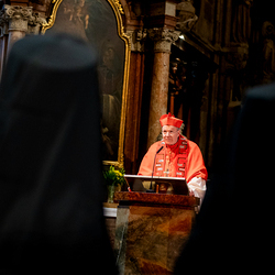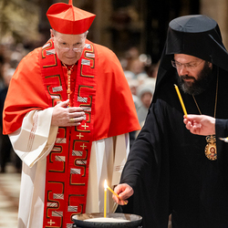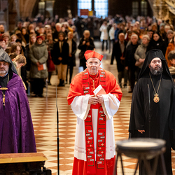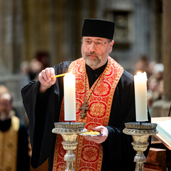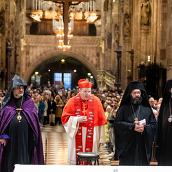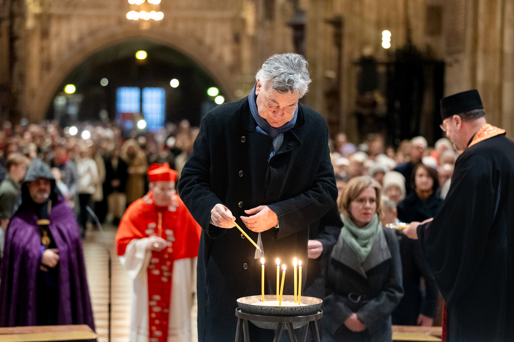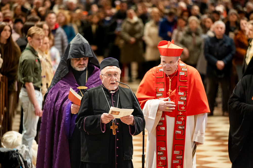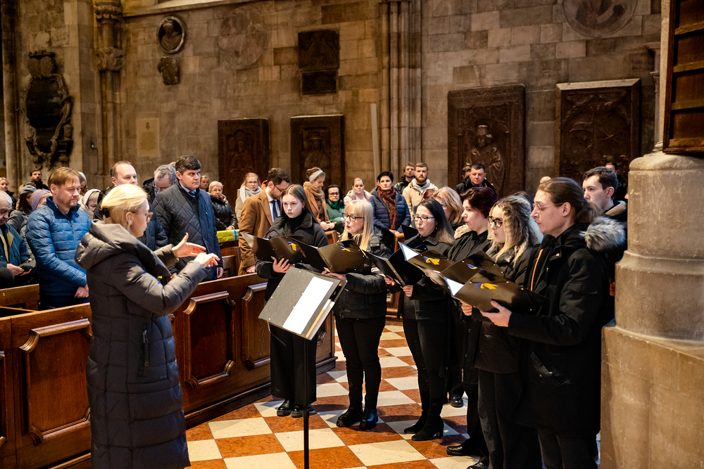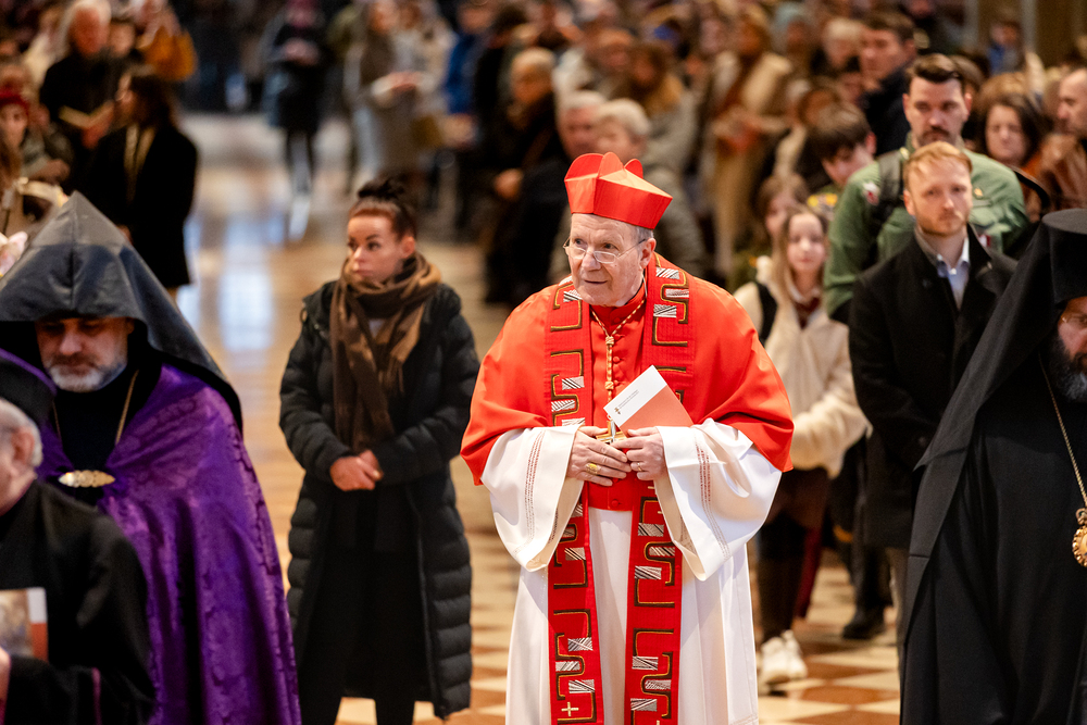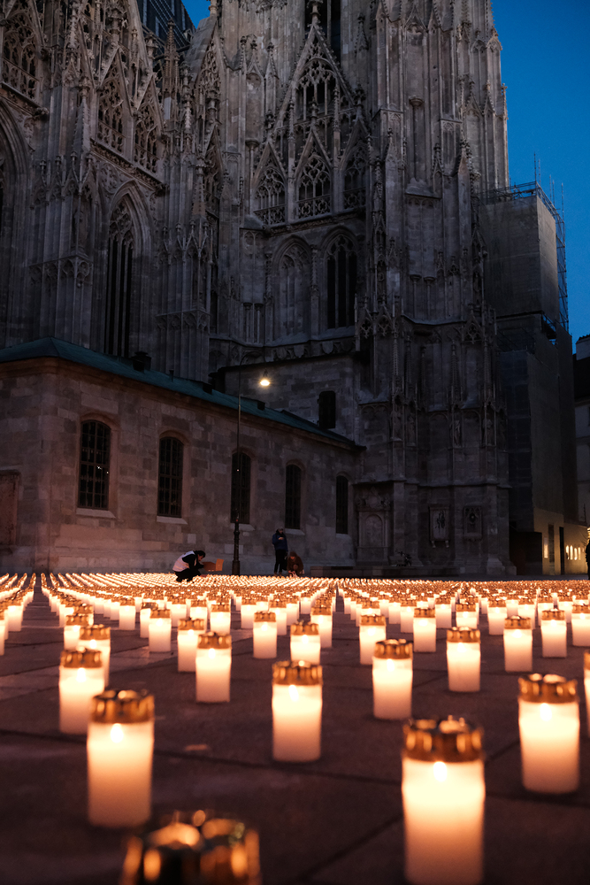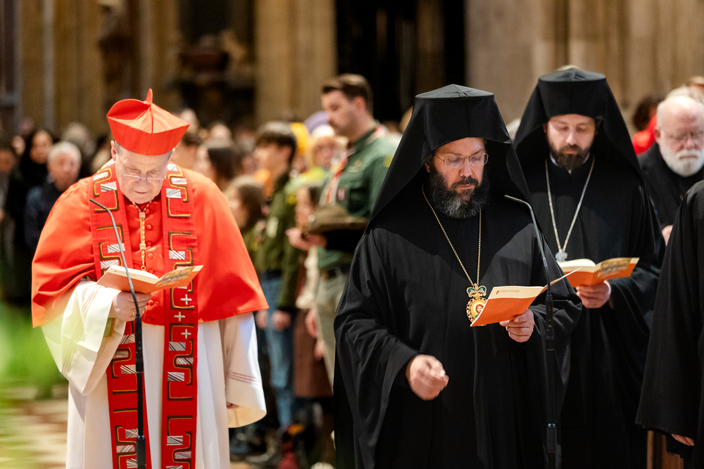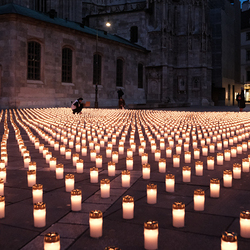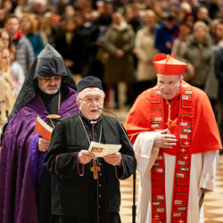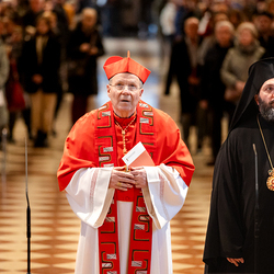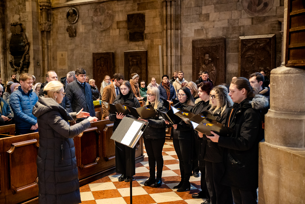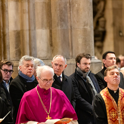 Zum dritten Jahrestag des russischen Angriffs auf die Ukraine fand im Wiener Stephansdom ein ökumenisches Friedensgebet statt, an dem Kardinal Christoph Schönborn teilnahm. Das Gebet wolle "die Stimmen der vielen Leidenden aufgreifen und ein Licht der Hoffnung inmitten der Dunkelheit entzünden. An dem Gottesdienst nahmen neben Kardinal Schönborn auch der päpstliche Gesandte in Österreich, Nuntius Erzbischof Pedro Lopez, der armenisch-apostolische Bischof und Vorsitzende des Ökumenischen Rates der Kirchen in Österreich, Tiran Petrosyan, der griechisch-orthodoxe Metropolit und Vorsitzende der Orthodoxen Bischofskonferenz in Österreich, Arsenios (Kardamakis), der für die ukrainischen Gläubigen in Österreich zuständige orthodoxe Weihbischof Maximos Rudko sowie Chorepiskopus Emanuel Aydin von der Syrisch-Orthodoxen Kirche teil; weiters etwa auch Ostkirchen-Generalvikar Yurij Kolasa, der Wiener Weihbischof Franz Scharl und Domdekan Rudolf Prokschi. Desweiteren erinnerte die Caritas bei einem Lichtermeer aus Tausenden auf dem Wiener Stephansplatz entzündeten Kerzen an das Schicksal der Menschen im Ukrainekrieg.Wir waren mit der Kamera dabei.