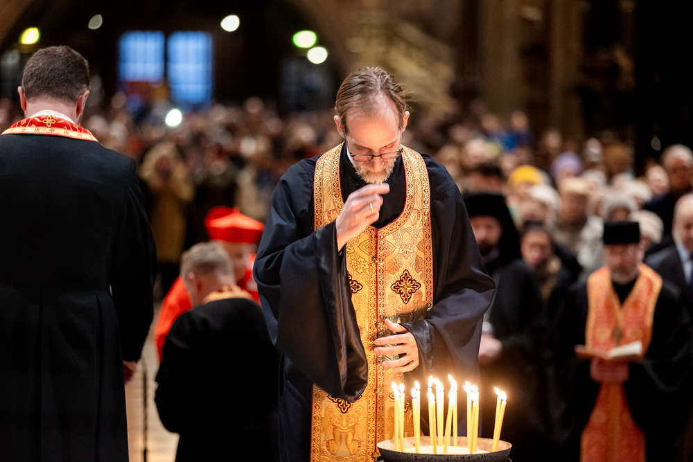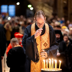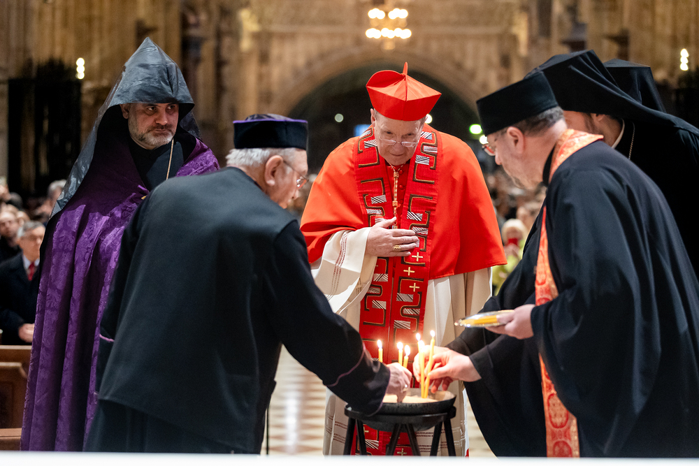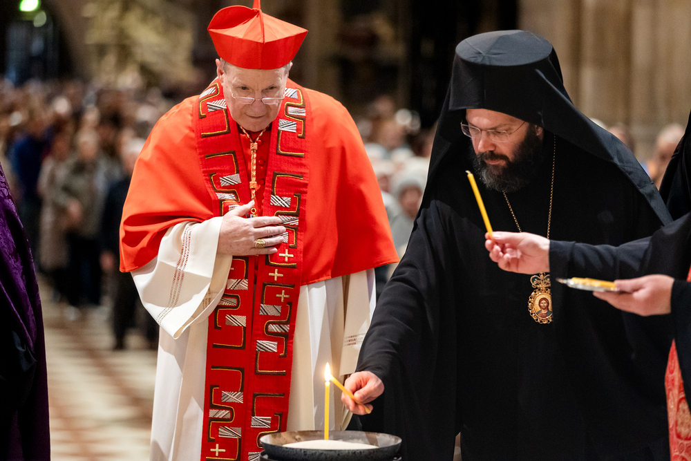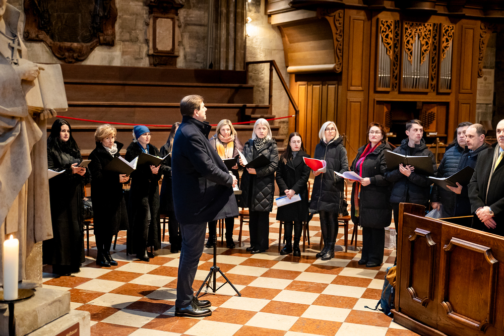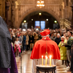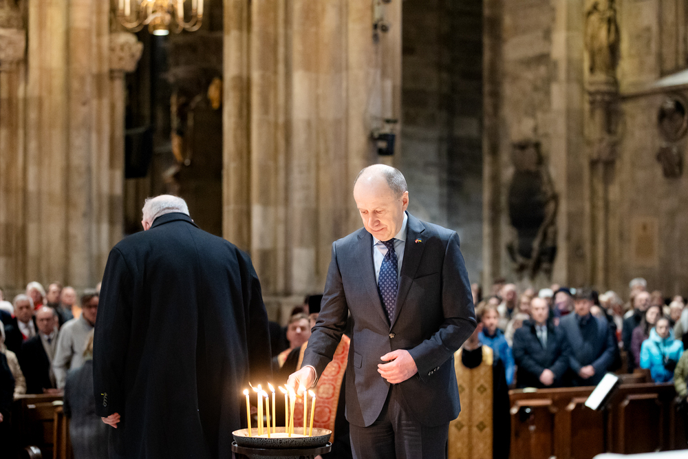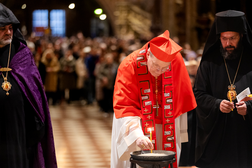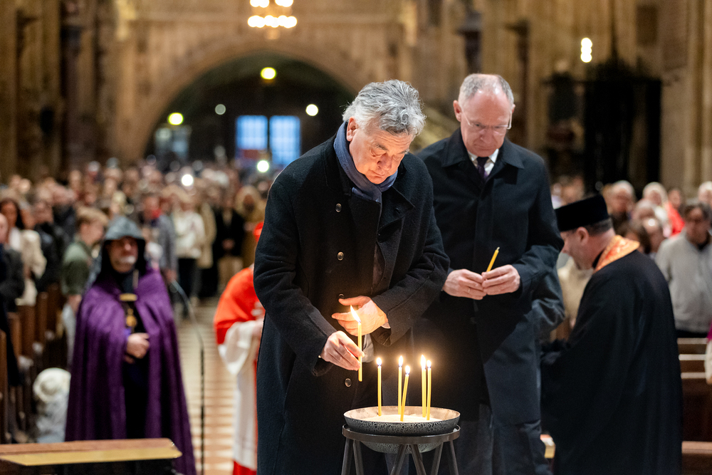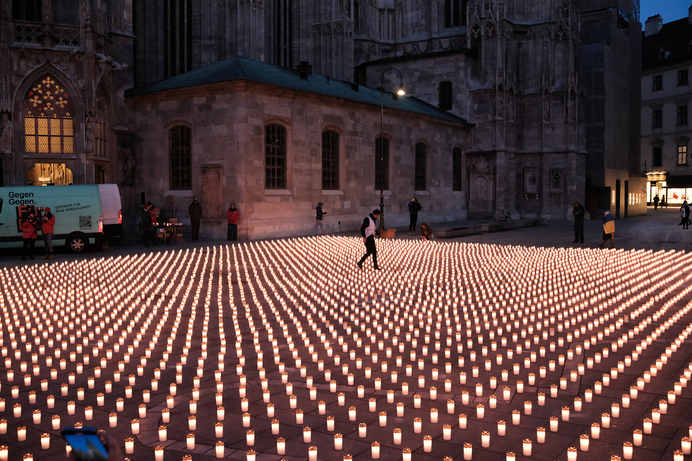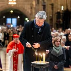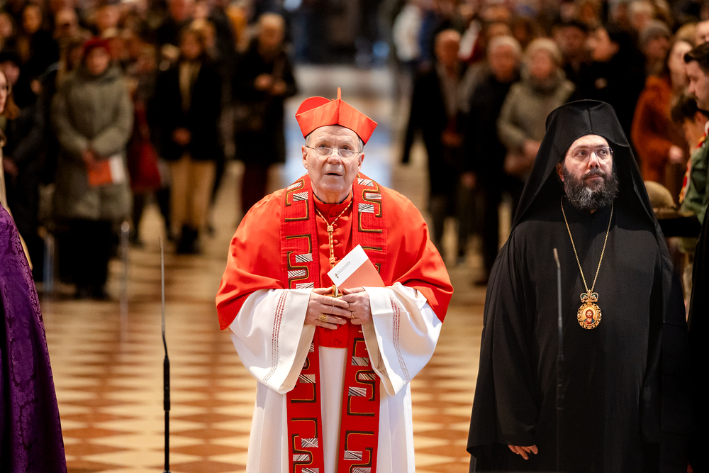 Zum dritten Jahrestag des russischen Angriffs auf die Ukraine fand im Wiener Stephansdom ein ökumenisches Friedensgebet statt, an dem Kardinal Christoph Schönborn teilnahm. Das Gebet wolle "die Stimmen der vielen Leidenden aufgreifen und ein Licht der Hoffnung inmitten der Dunkelheit entzünden. An dem Gottesdienst nahmen neben Kardinal Schönborn auch der päpstliche Gesandte in Österreich, Nuntius Erzbischof Pedro Lopez, der armenisch-apostolische Bischof und Vorsitzende des Ökumenischen Rates der Kirchen in Österreich, Tiran Petrosyan, der griechisch-orthodoxe Metropolit und Vorsitzende der Orthodoxen Bischofskonferenz in Österreich, Arsenios (Kardamakis), der für die ukrainischen Gläubigen in Österreich zuständige orthodoxe Weihbischof Maximos Rudko sowie Chorepiskopus Emanuel Aydin von der Syrisch-Orthodoxen Kirche teil; weiters etwa auch Ostkirchen-Generalvikar Yurij Kolasa, der Wiener Weihbischof Franz Scharl und Domdekan Rudolf Prokschi. Desweiteren erinnerte die Caritas bei einem Lichtermeer aus Tausenden auf dem Wiener Stephansplatz entzündeten Kerzen an das Schicksal der Menschen im Ukrainekrieg.Wir waren mit der Kamera dabei.